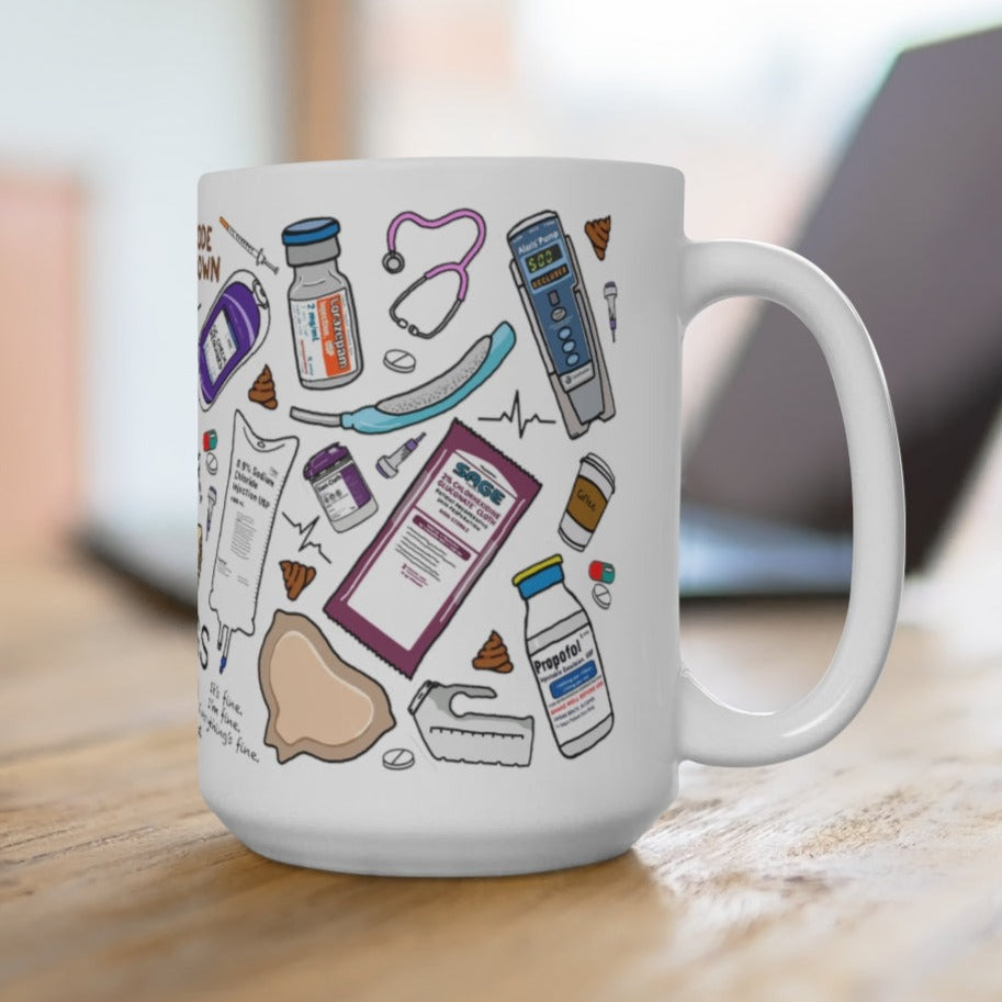 Show your love/hate for nursing with this mug featuring a unique Chubby Bunny House design you won’t find anywhere else! Perfect gift for a critical care ICU nurse in your life, or a new grad nurse.