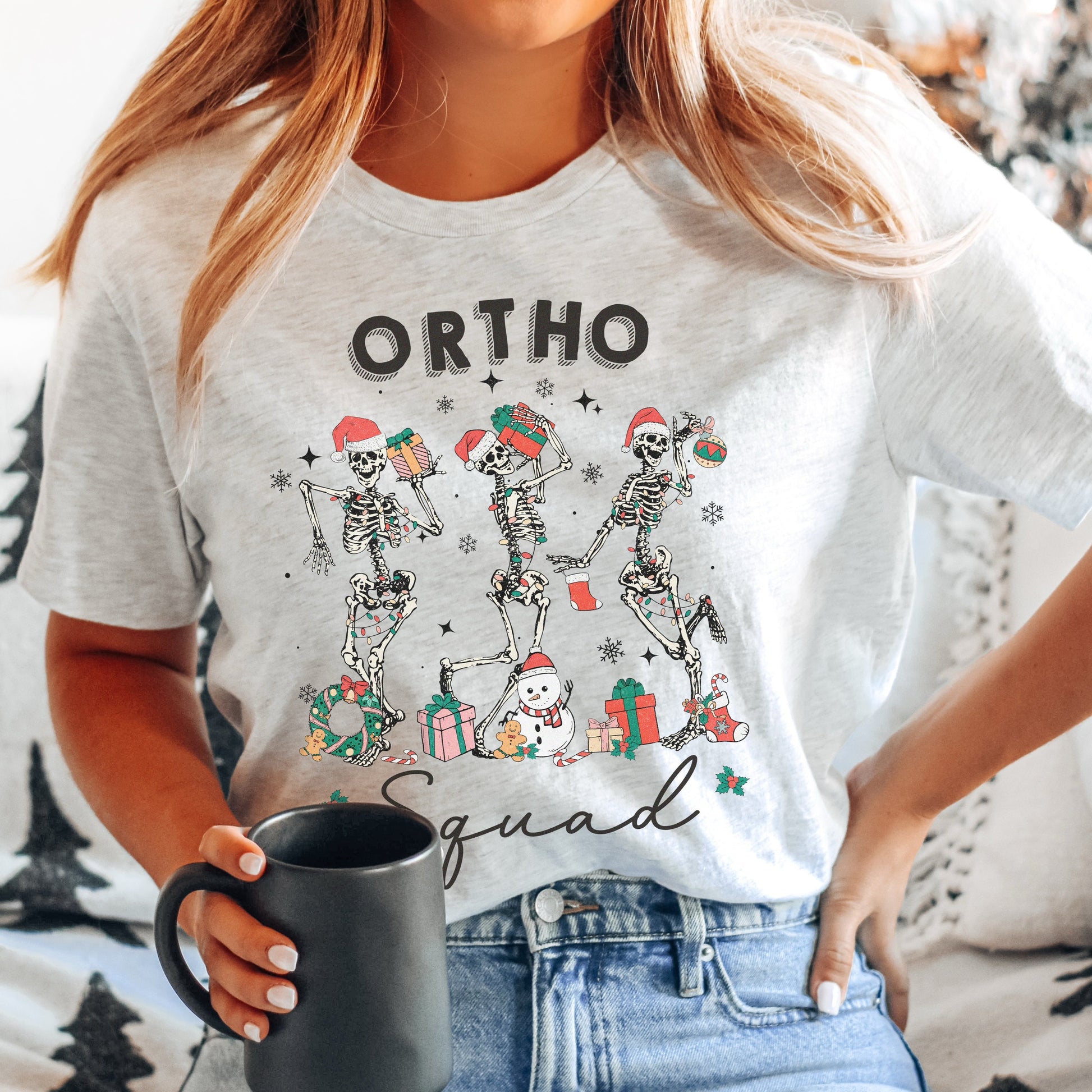 These dancing skeletons bring holiday season vibes to your wardrobe while showing off you're part of the ortho squad!