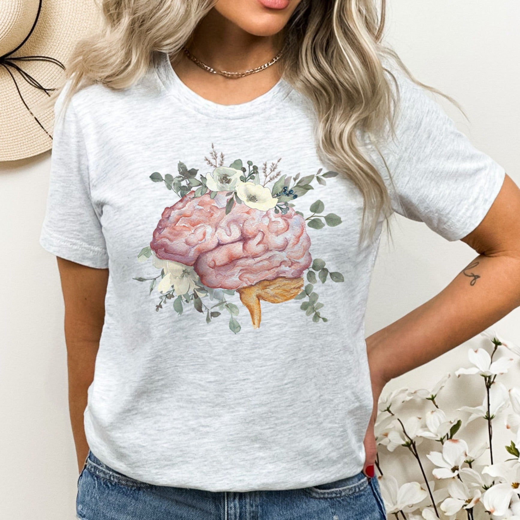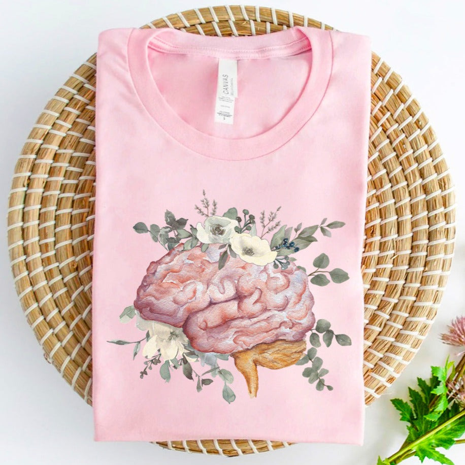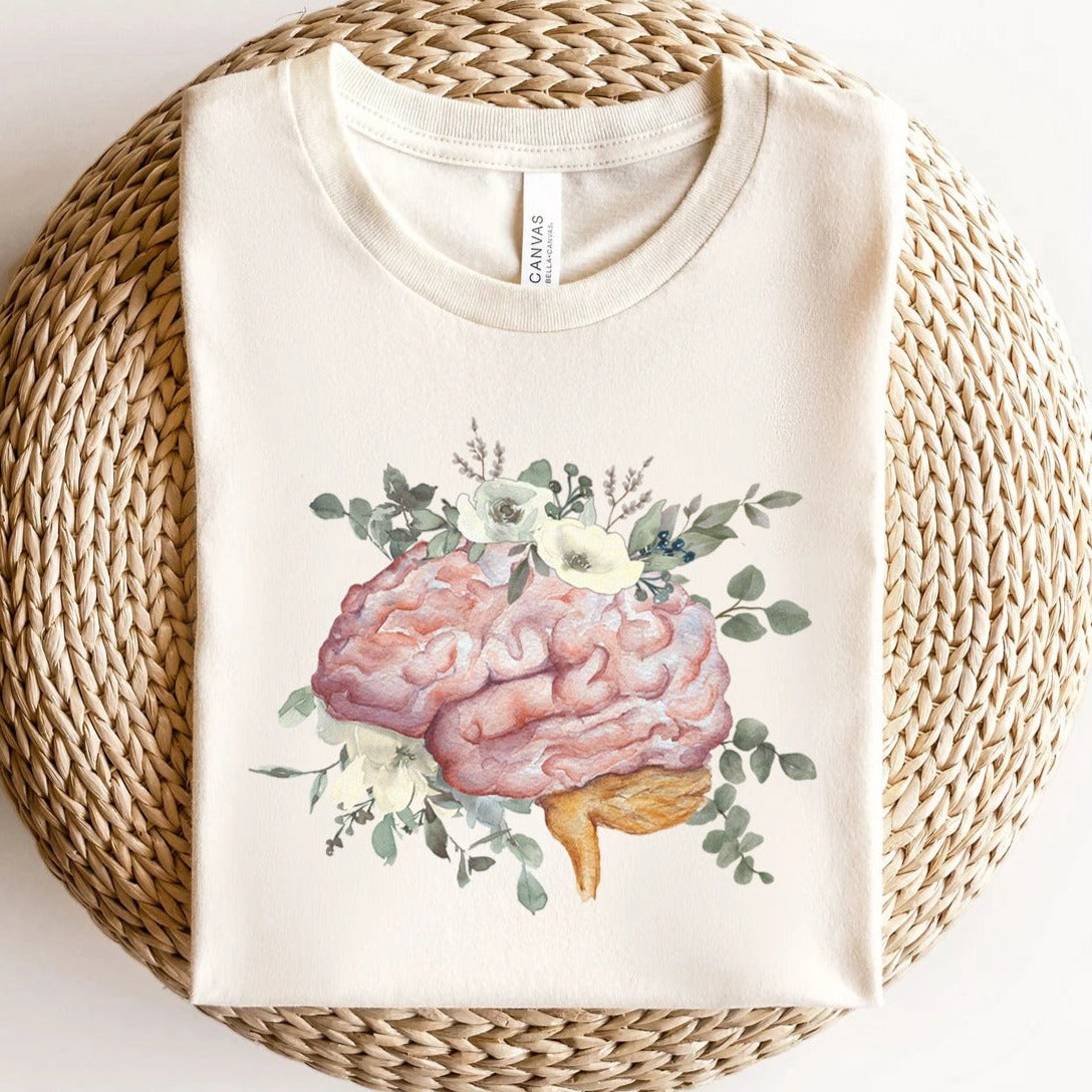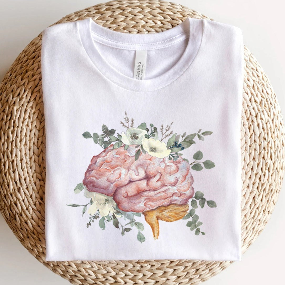 Watercolor Floral Anatomical Brain T-Shirt