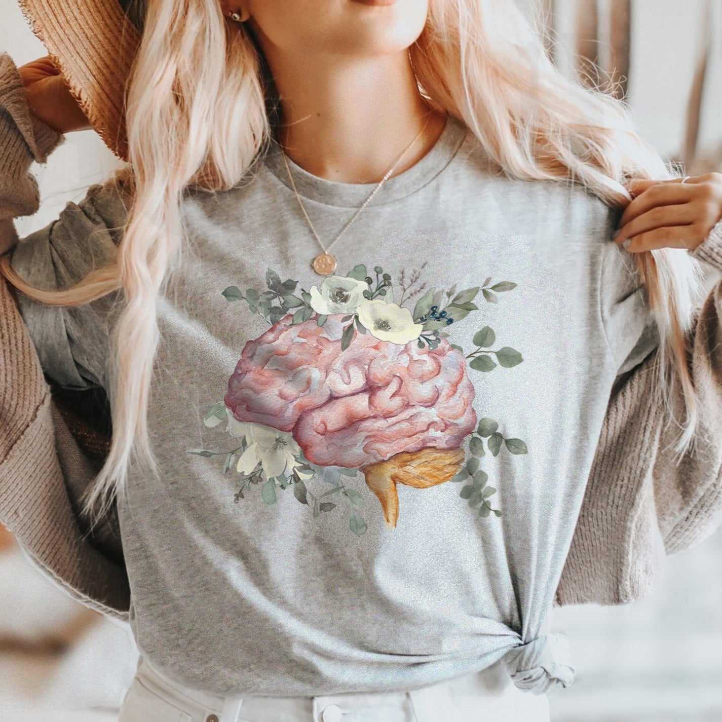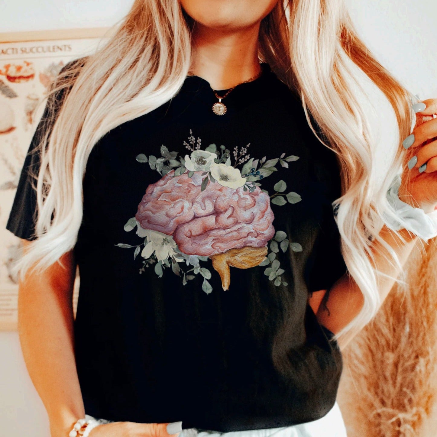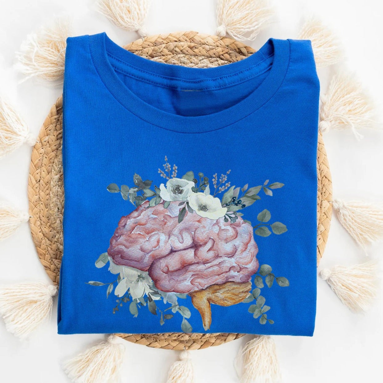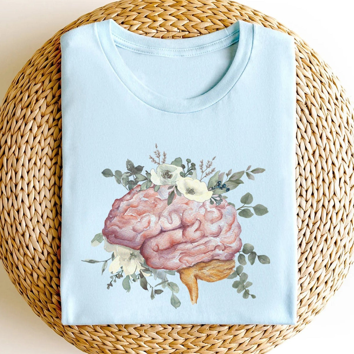 Watercolor Floral Anatomical Brain T-Shirt